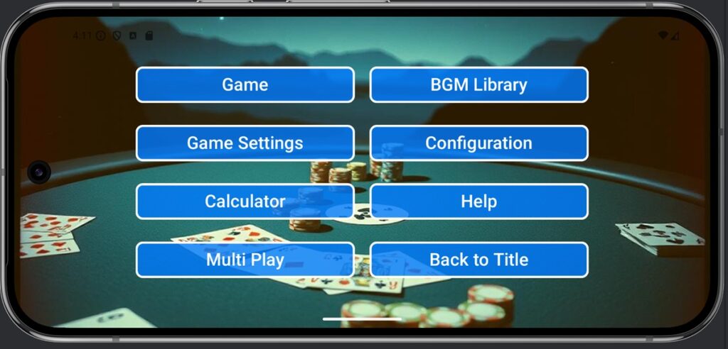 This application is a free game that allows you to play various types of poker, including Texas Hold’em, against NPCs (AI). The application supports both portrait and landscape orientations, enabling you to play the game in your preferred screen orientation.