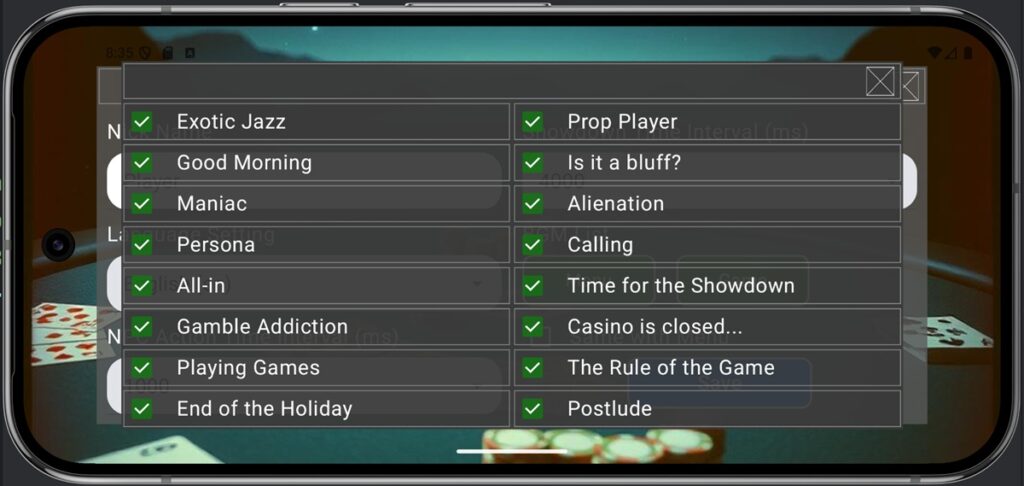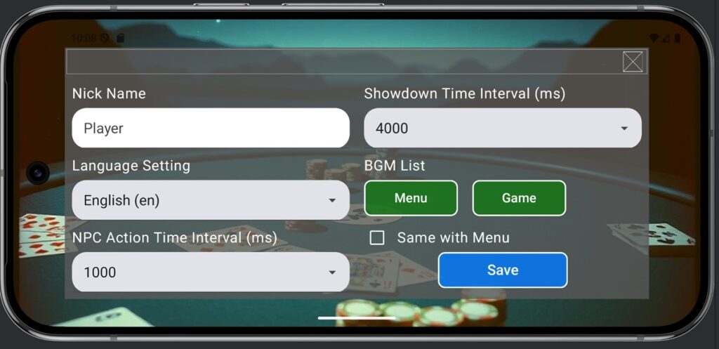 4. Showdown Time Interval: The time interval (in milliseconds) for viewing results during a showdown.